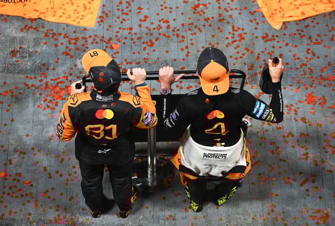 Lando and Oscar did just that, finishing third and fourth, Ending the weekend with 650 points, 325 more than our nearest challenger, it put the Championship beyond the reach of any of our rivals. In doing so, we secured successive titles for the first time since 1991, and surpassed Williams’ tally of nine titles - only Ferrari has won more.